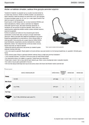 NILFISK SW200 920 - İticili Süpürücüler ÜRÜN ÖZELLİKLERİ