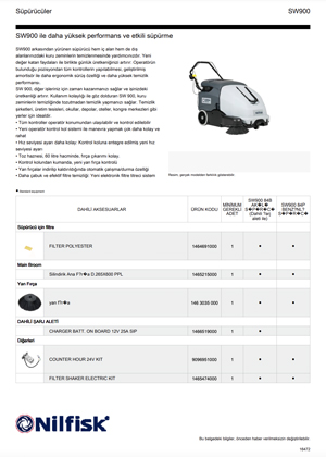 NILFISK SW 900 - İticili Süpürücüler ÜRÜN ÖZELLİKLERİ